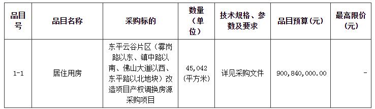 项目名称:东平云谷片区(雾岗路以东、镇中路以南、佛山大道以西、东平路以北地块)改造项目产权调换房源采购项目(二次)