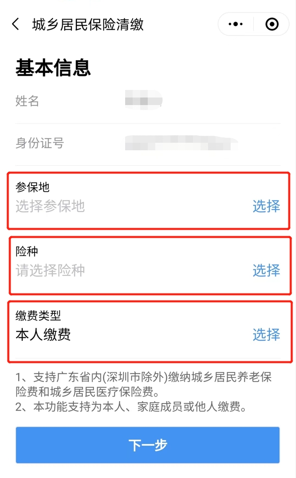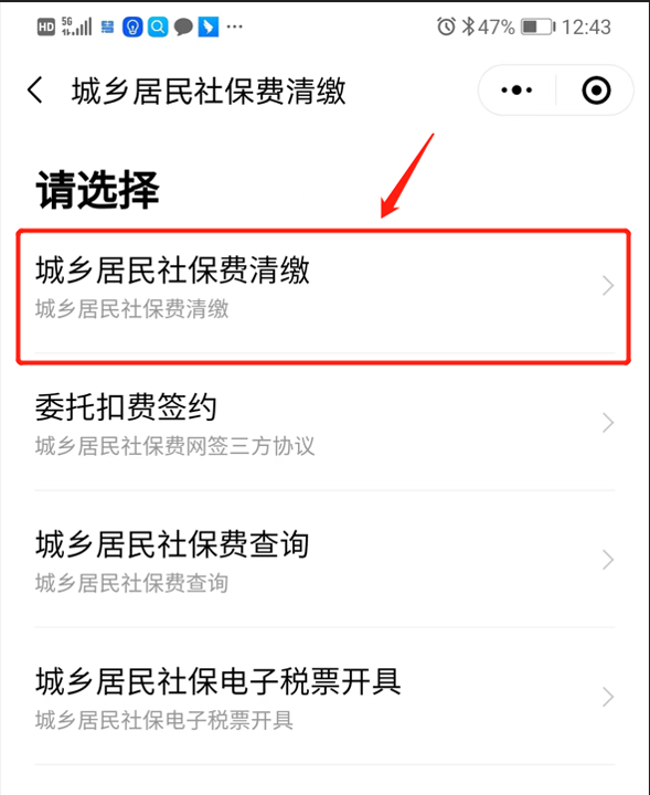 3.点击“城乡居民社保费清缴”,填写具体内容后进行缴费。缴费方式可以选择“微信支付”和“医保个账支付”。
