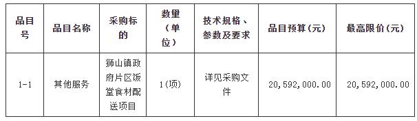 南海狮山镇政府片区饭堂食材配送项目招标公告