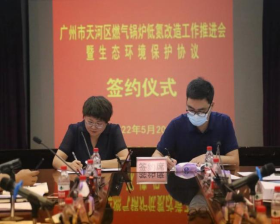 为强化天河区燃气锅炉深度治理,市生态环境局天河分局认真谋划,深入发动,试点先行,于2022年5月20日与28家企事业单位签订广州市首批生态环境保护协议,在全市率先全覆盖推进上述单位49台燃气承压锅炉低氮改造。