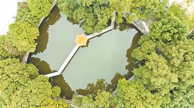 北约公园里有一片枝繁叶茂、环绕水塘而生的香樟树群。