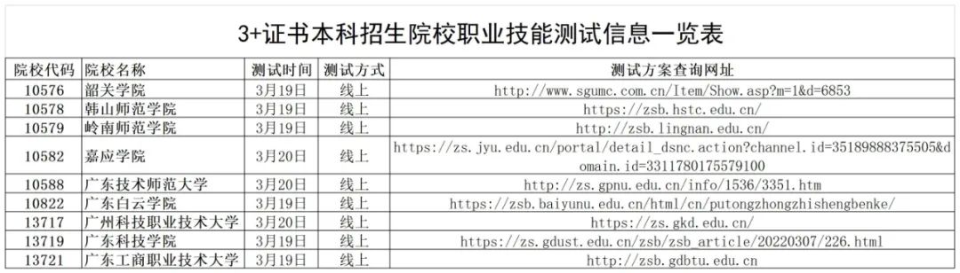 根据“3+证书”考试本科层次招生院校工作安排,“3+证书”考试本科层次招生院校组织的职业技能测试将于3月19日至20日陆续开展。