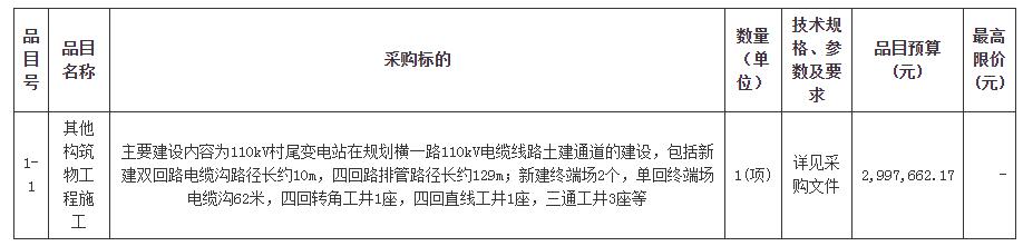 合同包1(佛山110千伏村尾输变电站电缆管廊通道基础设施建设工程):