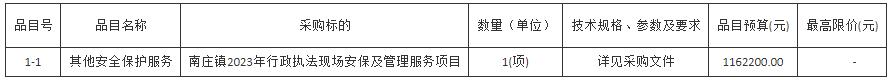 项目名称:南庄镇2023年行政执法现场安保及管理服务项目