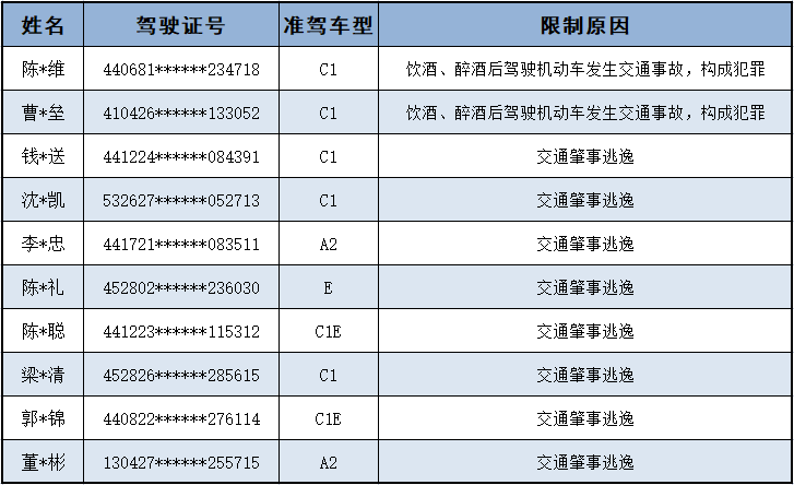 为进一步加大对严重交通违法行为的曝光力度,强化驾驶人交通安全意识,消除交通安全隐患,预防道路交通事故,佛山公安交警部门公布2022年第四季度被终生禁驾的驾驶人名单!