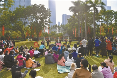 “珠江公园户外音乐会”吸引了众多市民游客。