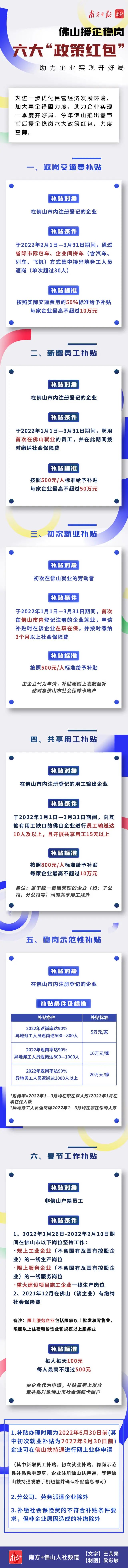 佛山共投入财政资金超2亿元推出六大针对性政策,助企业稳岗留工。具体而言,“六大政策”包含返岗交通费补贴、新增员工补贴、初次就业补贴、共享用工补贴、稳岗示范性奖补以及春节工作补贴,为企业与员工送上实实在在的政策红包。