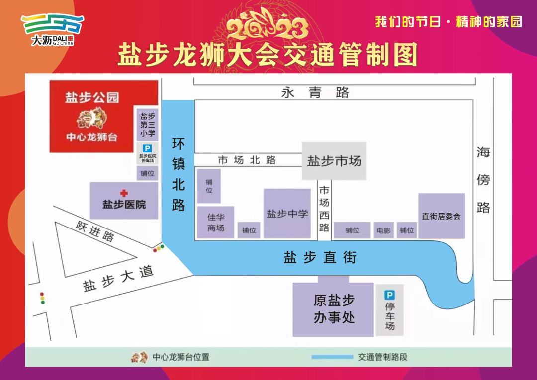 为保障盐步龙狮大会期间道路安全、有序,决定于活动当天,对相关路段实行临时交通管制,有关事项如下:
