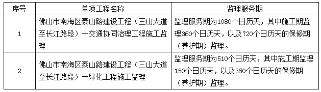 佛山市南海区泰山路建设工程(三山大道至长江路段)—交通协同治理工程及绿化工程施工监理 招标公告