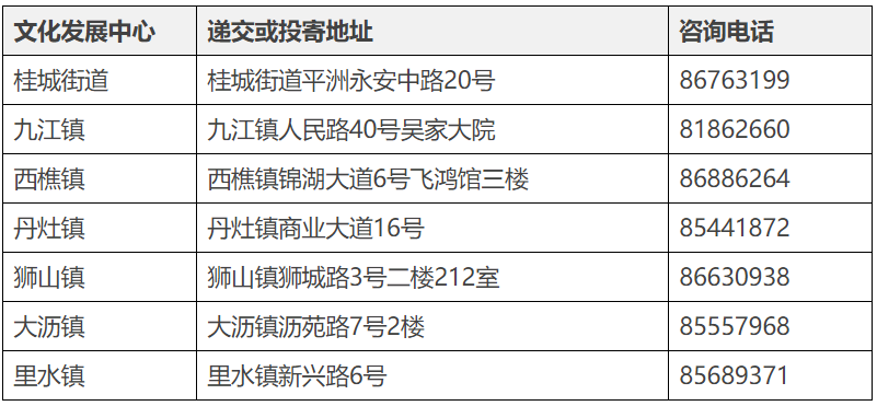 各镇(街道)文化部门负责受理、审查和汇总工作
