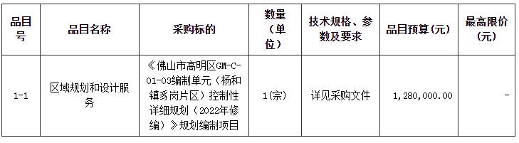 合同包1(《佛山市高明区GM-C-01-03编制单元(杨和镇豸岗片区)控制性详细规划(2022年修编)》规划编制项目):
