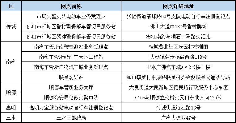 为鼓励淘汰蓝牌、黄牌电动自行车,保障电动自行车的安全驾驶,佛山交警联合邮政部门和回收企业,将在电动自行车上牌网点为蓝牌、黄牌电动自行车设立报废注销+新车登记“报一上一”业务专窗,首批的11个网点从1月31日起正式启用。