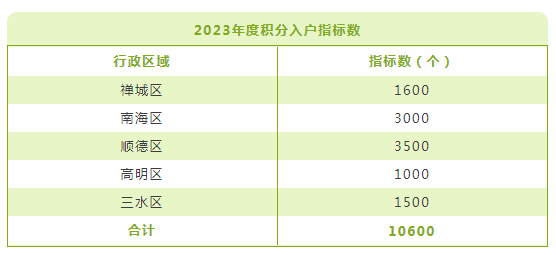 根据《佛山市人民政府办公室关于修订佛山市新市民积分制服务管理办法的通知》要求,佛山市公安局牵头制定了2023年度积分入户指标数和分配方案,日前已经市政府批准,并予以公布。
