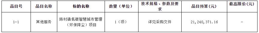 合同包1(陈村镇低碳智慧城市管理(环保降尘)项目):