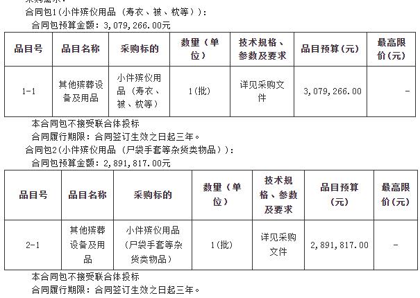合同包1(小件殡仪用品 (寿衣、被、枕等))特定资格要求如下: