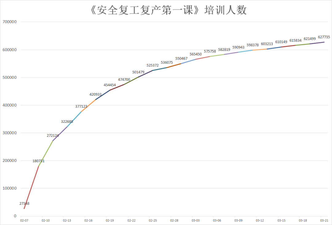 据统计,2月7日至3月20日,“云课堂”已有627,735人完成《安全复工复产第一课》学习并获得学习凭证,同比增加16.9%,“云课堂”33个课程线上浏览学习人次超1800万。