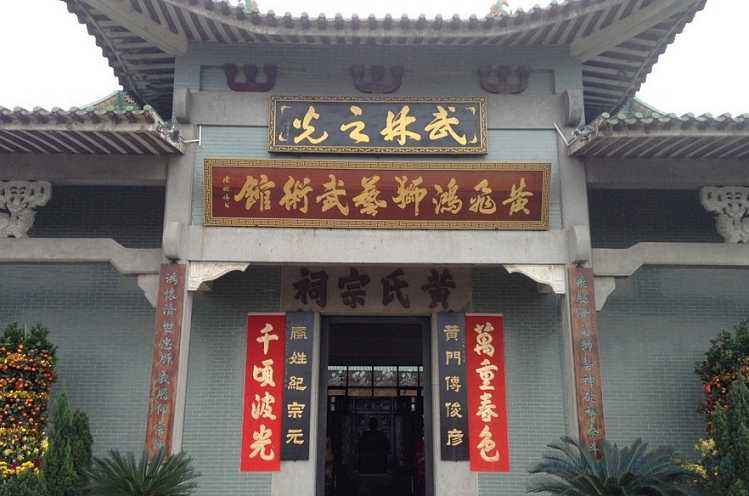 黄飞鸿狮艺武术馆建筑别致,具有清 末古建筑的风格。馆内分设有黄飞鸿故居;黄飞鸿史迹陈列影视室;宝芝林堂;针灸推拿;骨伤科堂;百草堂;关德兴纪念堂;其配套设施有武林的“广东十虎”名师像亭;黄飞鸿公园; 功夫、舞龙、舞狮等传统项目、定时表演。