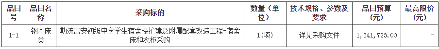 顺德勒流富安初级中学学生宿舍楼扩建及附属配套改造工程-宿舍床和衣柜采购招标公告
