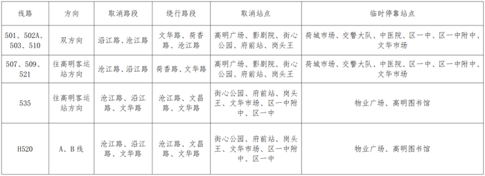 (一)根据道路临时交通管制措施,当日19:00后公交501、502A、503、507、509、510、521、535、H520线路实施临时绕道,其中: