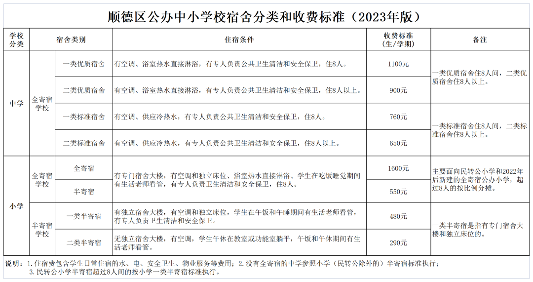 顺德区公办中小学校宿舍分类和收费标准有调整