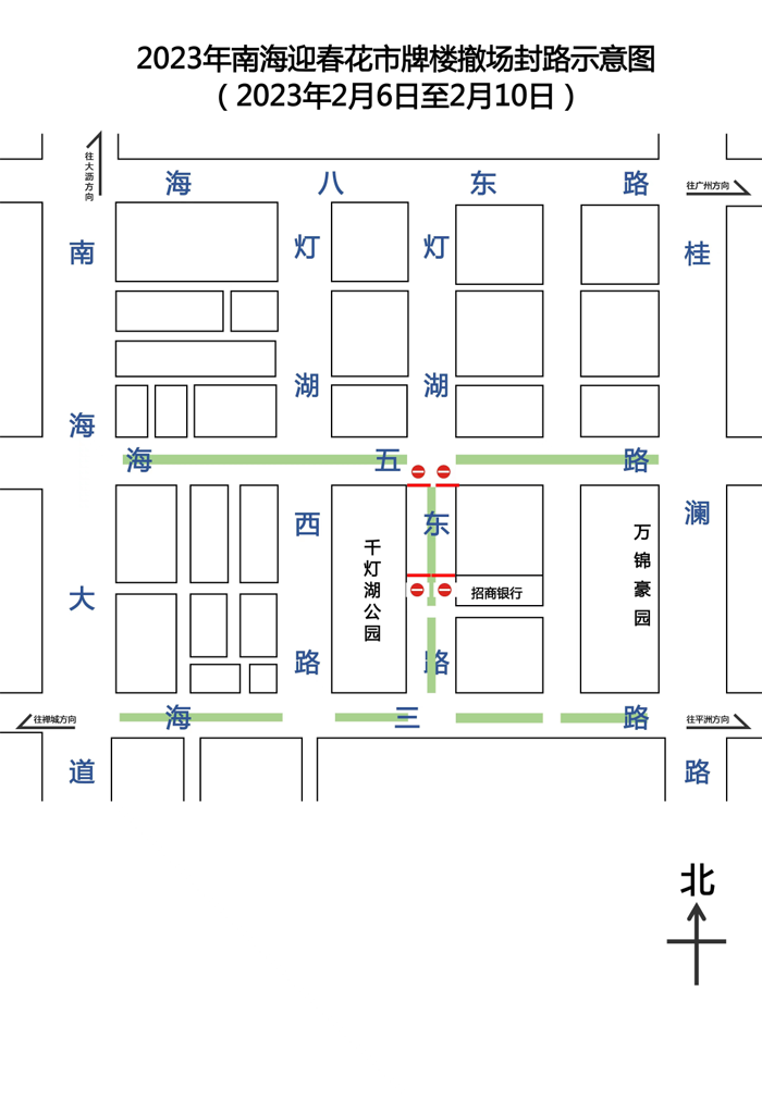 2023年南海迎春花市将于2月6日开展撤场工作,由于涉及牌楼拆除等工作,届时将对相关路段实施交通管制。