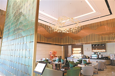 走进广州宾馆大堂,迎面一幅两层楼高的半透明落地玻璃墙宛若摇曳的波纹,碧绿灵动,就像从江边引入一汪活水