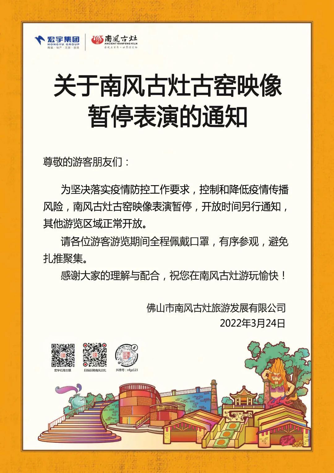 佛山禅城南风古灶古窑映像暂停表演的通知