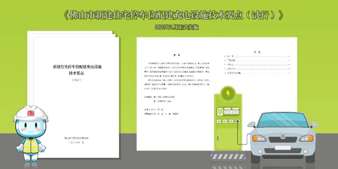 为贯彻落实《佛山市住房和城乡建设局 佛山市自然资源局 佛山市发展和改革局关于进一步加强新建项目电动汽车充电设施规划建设工作的通知》相关要求,确保新建住宅配建停车位100%建设充电设施或预留建设安装条件,规范和指导新建住宅充电设施的施工图设计和审查工作,市住房城乡建设局编制了《佛山市新建住宅停车位配建充电设施技术要点(试行)》。《技术要点》自2023年1月正式实施。