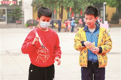 “耶,中了!”在佛山市外国语学校(小学部)校内广场两旁的欢呼声此起彼伏,吸引了不少孩子和家长围观,原来是在进行寓意着前“兔”无量、“兔”步青云的套圈和投壶活动,吸引孩子们玩得不亦乐乎。