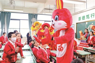 “打开中国文化史,无不活跃着兔子的身影,中秋兔爷、元宵兔灯、嫦娥玉兔……小兔代表健康长寿、善良乐观、活泼灵动。”张槎中心小学校长黄艺表示,希望大家能成为新时代的“魅力兔”,自强奋斗、智慧自信、多才多艺。“展望癸卯兔年,宏图已经展开,大道已经铺展,我们全体师生将信心百倍、锐意进取,在新征程、新起点上接续奋斗、谱写‘适合教育’新华章。”