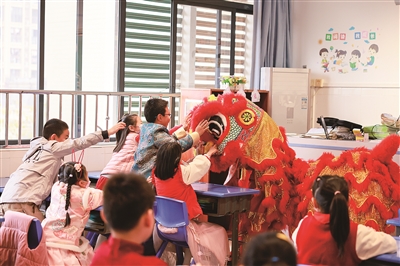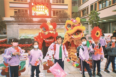 这支舞狮队的表演是环湖小学“武术特色学校”建设工作的成果展示,是落实“双减”政策的生动写照。在去年9月挂牌“佛山功夫文化教育实践基地”后,环湖小学积极推动武术进校园项目,研发环湖校本特色的洪拳操、武术课程及武术音乐。开学日当天,吉祥的舞狮队还来到各个课室、办公室巡游助兴,拜年祈福。孩子们更是兴奋不已,摸摸狮头、碰碰狮尾。锣鼓声、笑声、掌声、欢呼声响彻校园,环湖成了欢乐的海洋。