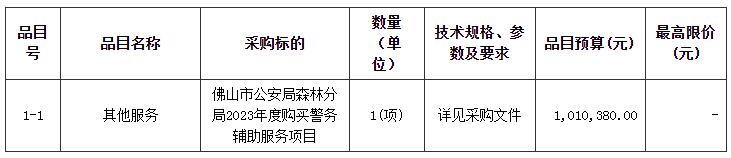 合同包1(佛山市公安局森林分局2023年度购买警务辅助服务项目):