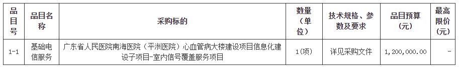 项目名称:广东省人民医院南海医院(平洲医院)心血管病大楼建设项目信息化建设子项目-室内信号覆盖服务项目