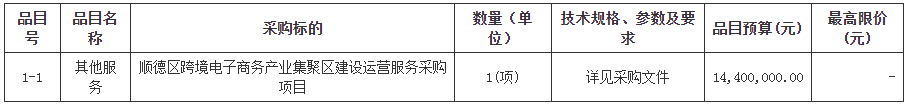 项目名称:顺德区跨境电子商务产业集聚区建设运营服务采购项目