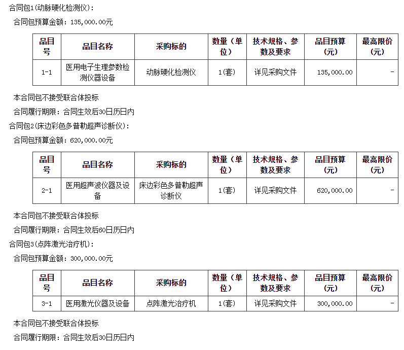 项目名称:佛山市高明区中医院动脉硬化检测仪、床边彩色多普勒超声诊断仪、点阵激光治疗机采购项目