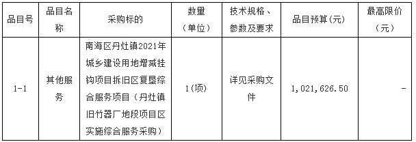 合同包1(南海区丹灶镇2021年城乡建设用地增减挂钩项目拆旧区复垦综合服务项目(丹灶镇旧竹器厂地段项目区实施综合服务采购)):