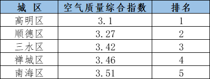 2022年12月,佛山市二氧化硫(SO2)、二氧化氮(NO2)、可吸入颗粒物(PM10)、细颗粒物(PM2.5)平均浓度分别为7、33、44、27微克/立方米,一氧化碳(CO)日平均浓度的第95百分位数为0.8毫克/立方米,臭氧日最大8小时滑动平均(O3-8h)浓度的第90百分位数为96微克/立方米。按照空气质量指数(AQI)评价,全市优良天数占整月有效天数的100%。