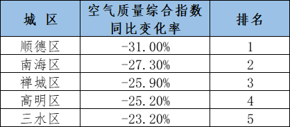 注:空气质量综合指数同比变化率为负数代表改善,为正数代表恶化,为0代表持平。