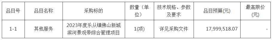 乐从镇佛山新城滨河景观带综合管理项目招标公告