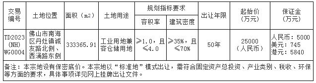 八、自本次公告起至网上挂牌截止期间,如有关于本宗地竞买文件的修改、澄清、说明等将通过网上交易系统以及佛山市南海区人民政府网发布,请有意参与竞买者密切留意。其它未尽事宜,详见本宗地的网上挂牌出让文件。