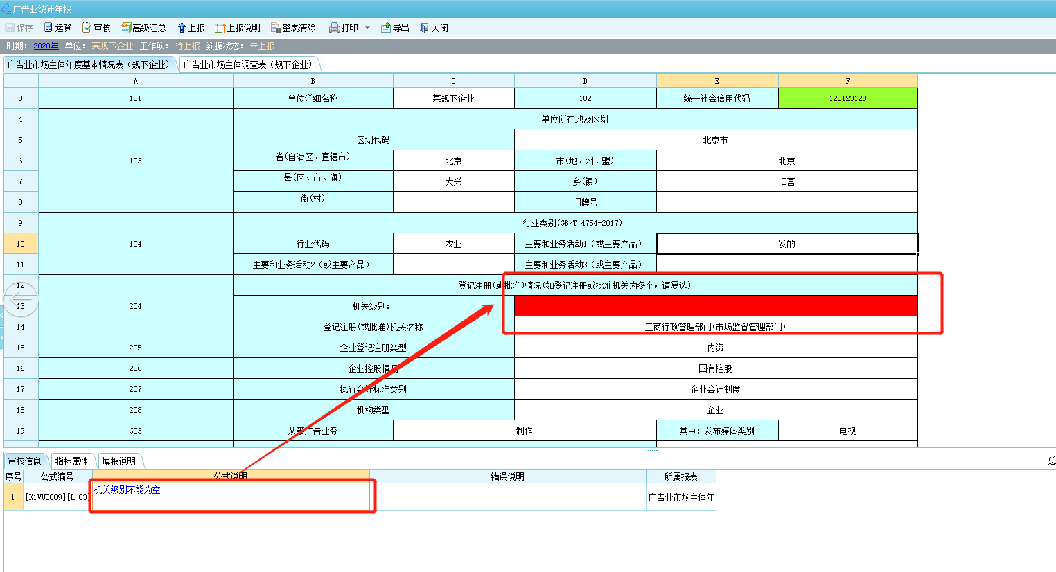 当逻辑性审核没有错误以后,首先要确定填写的数据有没有业务性错误,避免出现数据异常、漏项(如漏填广告业务收入其中项数据等)、单位理解有误(把“万元”误解为“元”)等情形。