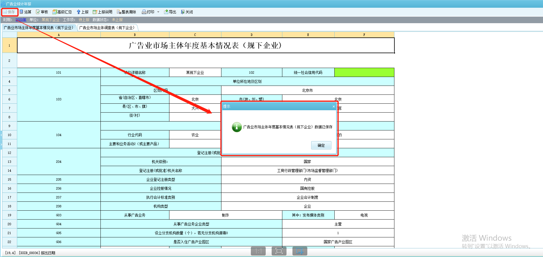 数据填写完毕后,点击工具栏上的【保存】按钮,可对填写的数据进行保存。