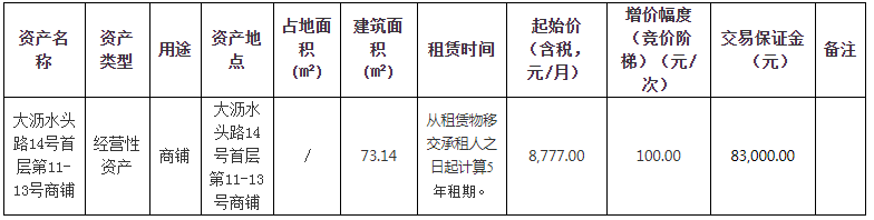 南海大沥水头路14号首层第11-13号商铺网上租赁竞投公告