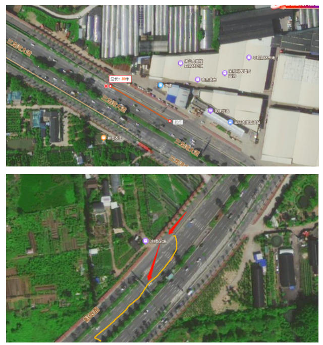 主路入口(原主道转佛山一环出口改为入口):鸿师花场