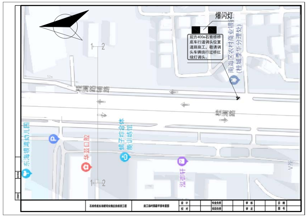 自2023年2月13日上午9点30分起,临时全封闭石(石肯)桥底调头位置以及石(石肯)桥东边桂澜路辅路至东海银湾幼儿园门前段,进行开挖施工,施工工期约50日历天。受到施工影响,车行道将无法通行,人行道可通行。建议需要石(石肯)桥底调头车辆敬请绕行至桂澜路主道过石(石肯)桥后交通信号灯处调头。