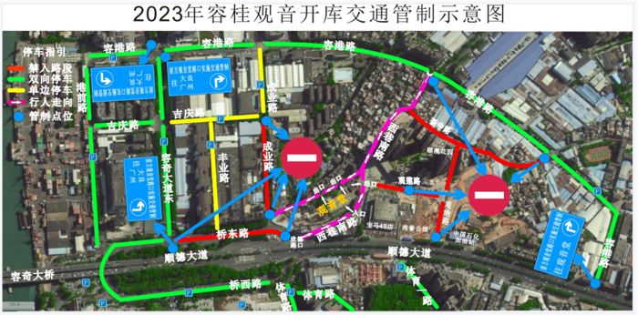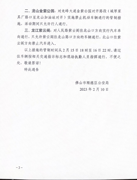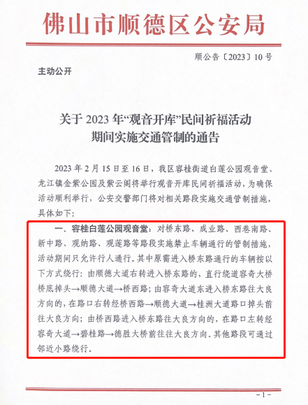 为确保活动顺利举行,2023年2月15日18时至16日22时,公安交警部门将对桥东路、成业路、西巷南路、新中路、观纳路、观莲路等路段实施禁止车辆通行的管制措施,活动期间只允许行人通行。