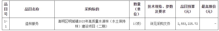 合同包1(高明区明城镇2023年高质量水源林(水土保持林)建设项目(二期)):