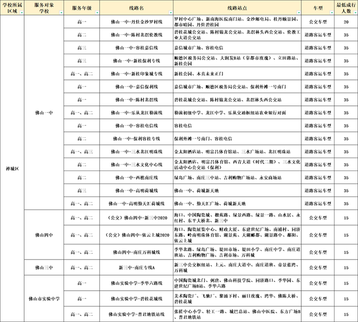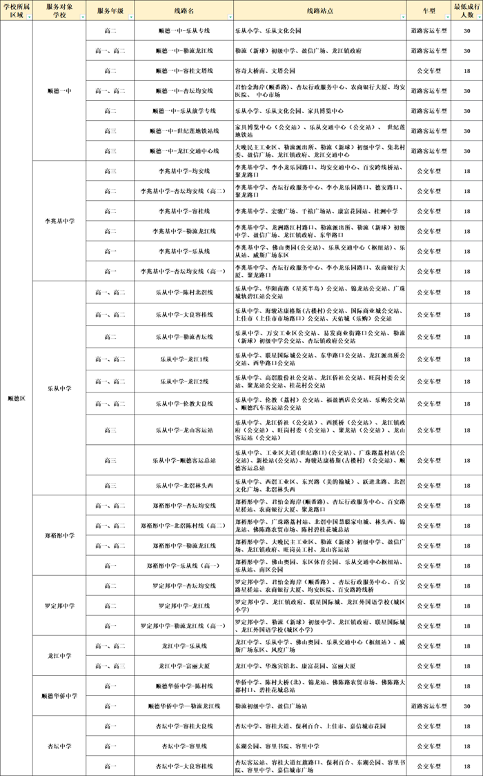 截至目前,辅助公交校园线已覆盖多所学校,共组织运营164条“定制校园线”,共覆盖31所学校,包括佛山一中、石门中学、顺德一中、南海中学、桂城中学、李兆基中学等,线路方向均涵括佛山五区,满足大部分学生的出行需求。