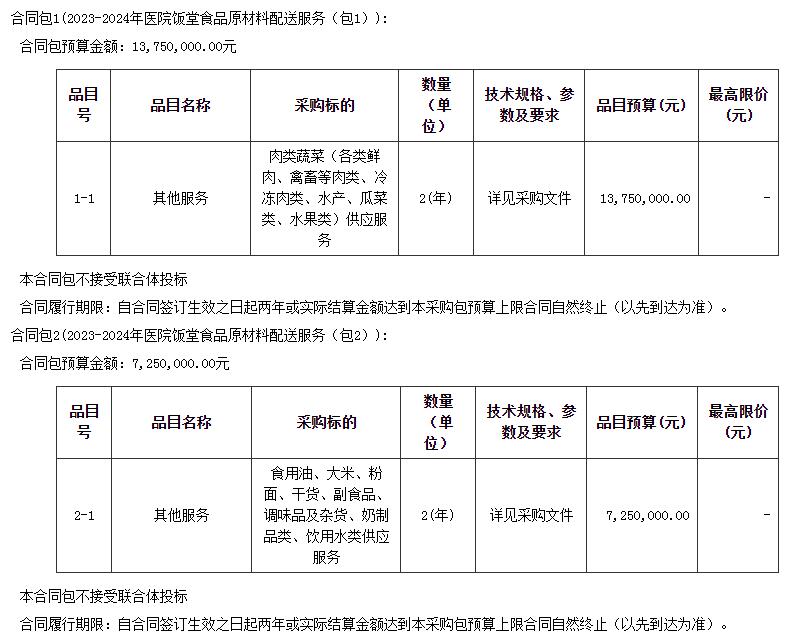 项目名称:2023-2024年医院饭堂食品原材料配送服务