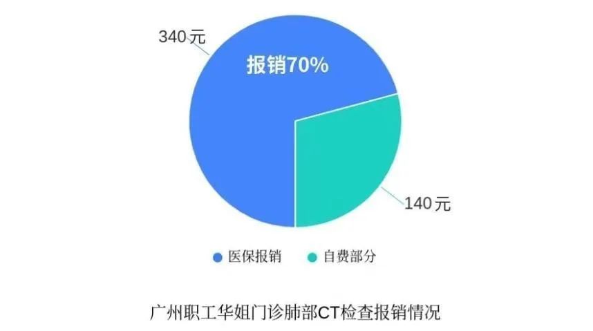 今年58岁的广州退休职工华姐,2022年11月因呼吸有啰音,到广州市第一人民医院门诊就医,做了肺部CT,总医疗费用480多元。当时CT、MRI等项目还未纳入门诊统筹,华姐需要全额自负。而最近,她“阳康”后又到医院做CT,发现同样的项目,自己只给了140元,统筹基金支付了70%。